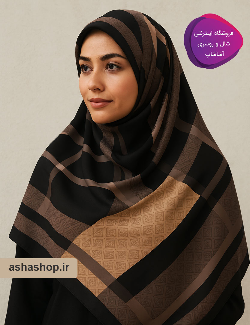 روسری شما با طرحی زیبا و کلاسیک، ترکیبی از بافت‌های ساده و طرح‌های هندسی کوچک است که با پالت رنگی خنثی و پرکاربرد مشکی و کرم اجرا شده است. این طرح چهارخانه درشت، جلوه‌ای مدرن و در عین حال شیک و رسمی به روسری بخشیده و آن را برای موقعیت‌های مختلف مناسب می‌سازد.